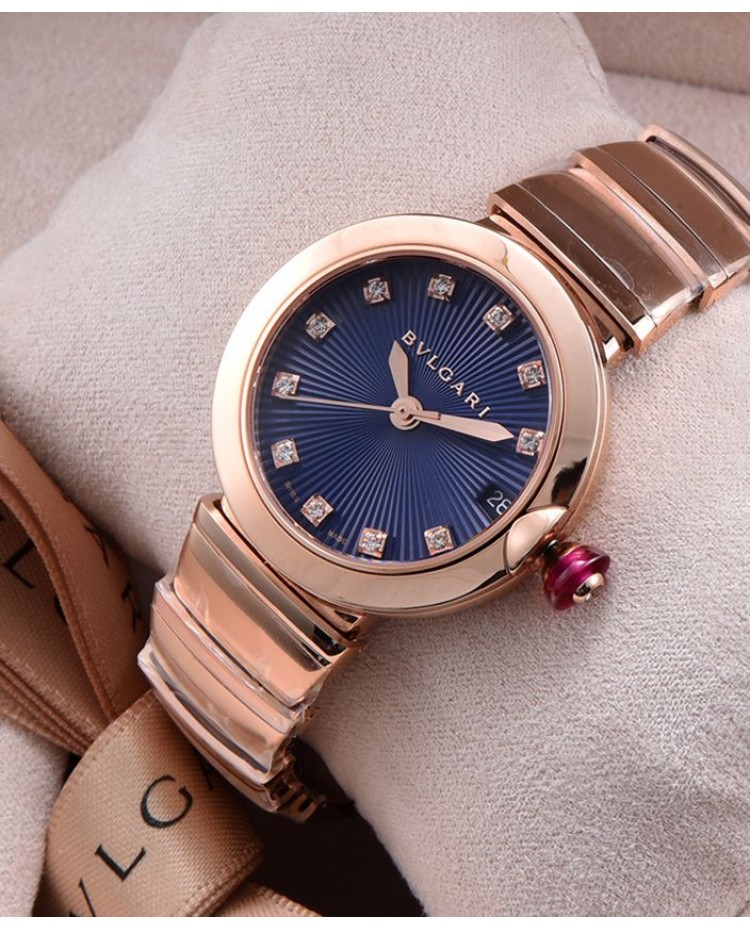 Bvlgari golden stainless steel and diamond watch Blue
